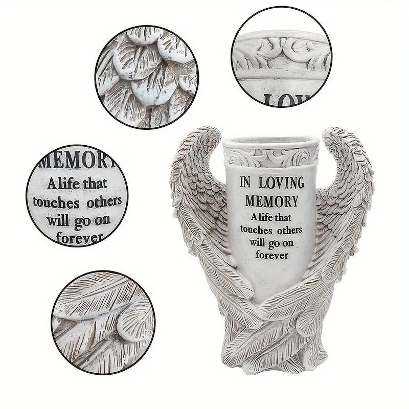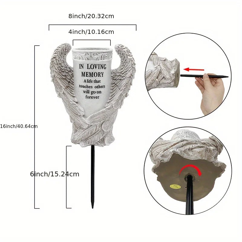 Waterproof Garden Statue with Spiked Angel Wings for Tomb Decoration Resin Cemetery Gift to Commemorate