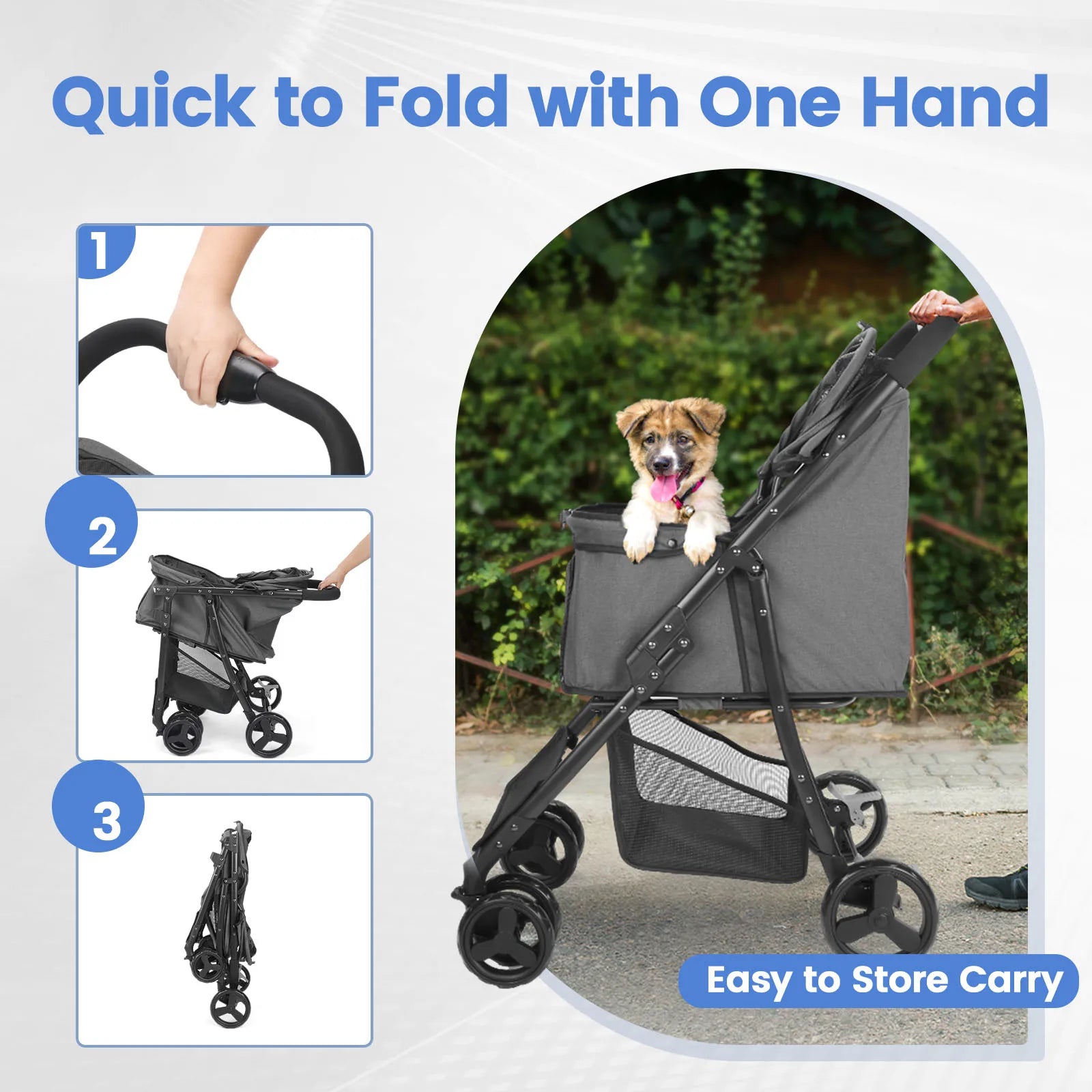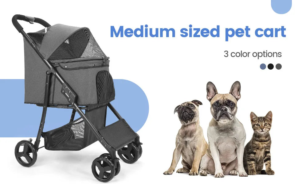 Wedyvko Pet Stroller 360 Rotate Wheels Dog Carrier with Brakes And Basket for Small to Medium Sized Dogs Breathable Metal Frame