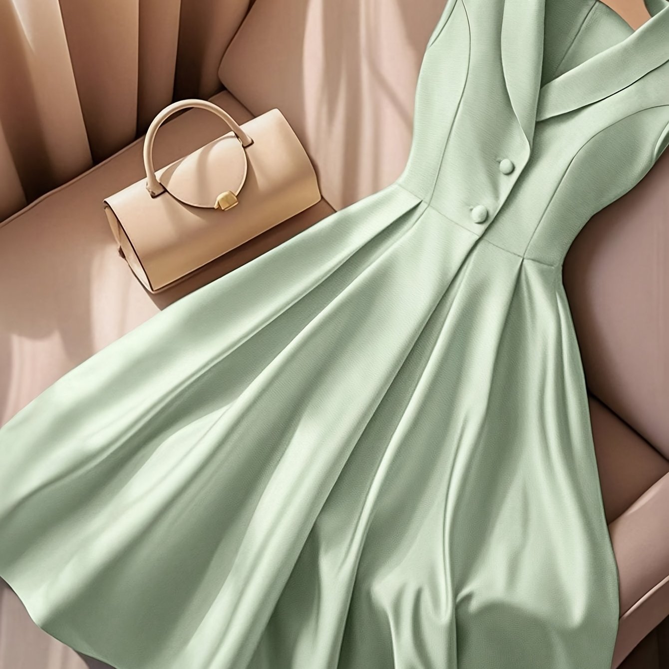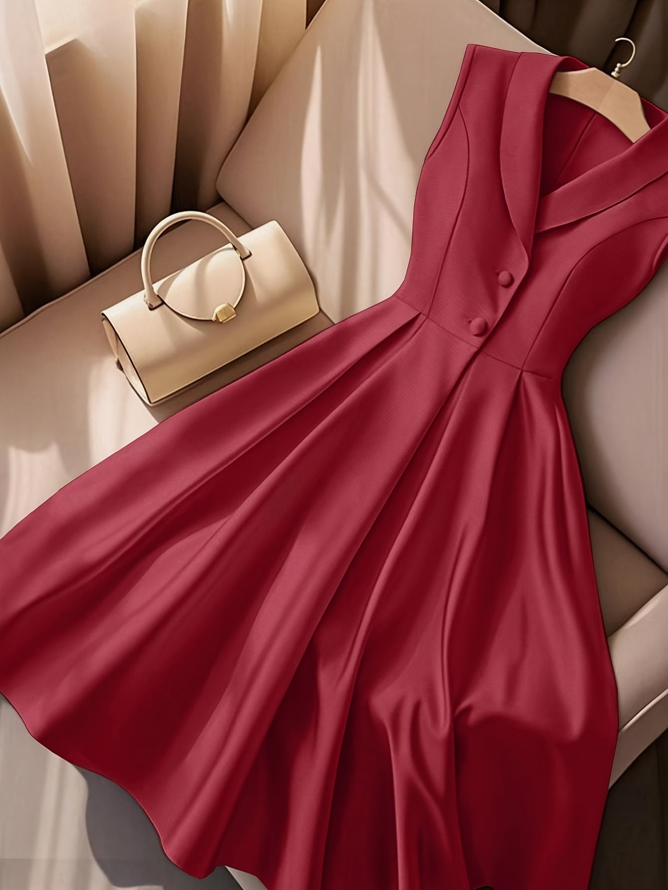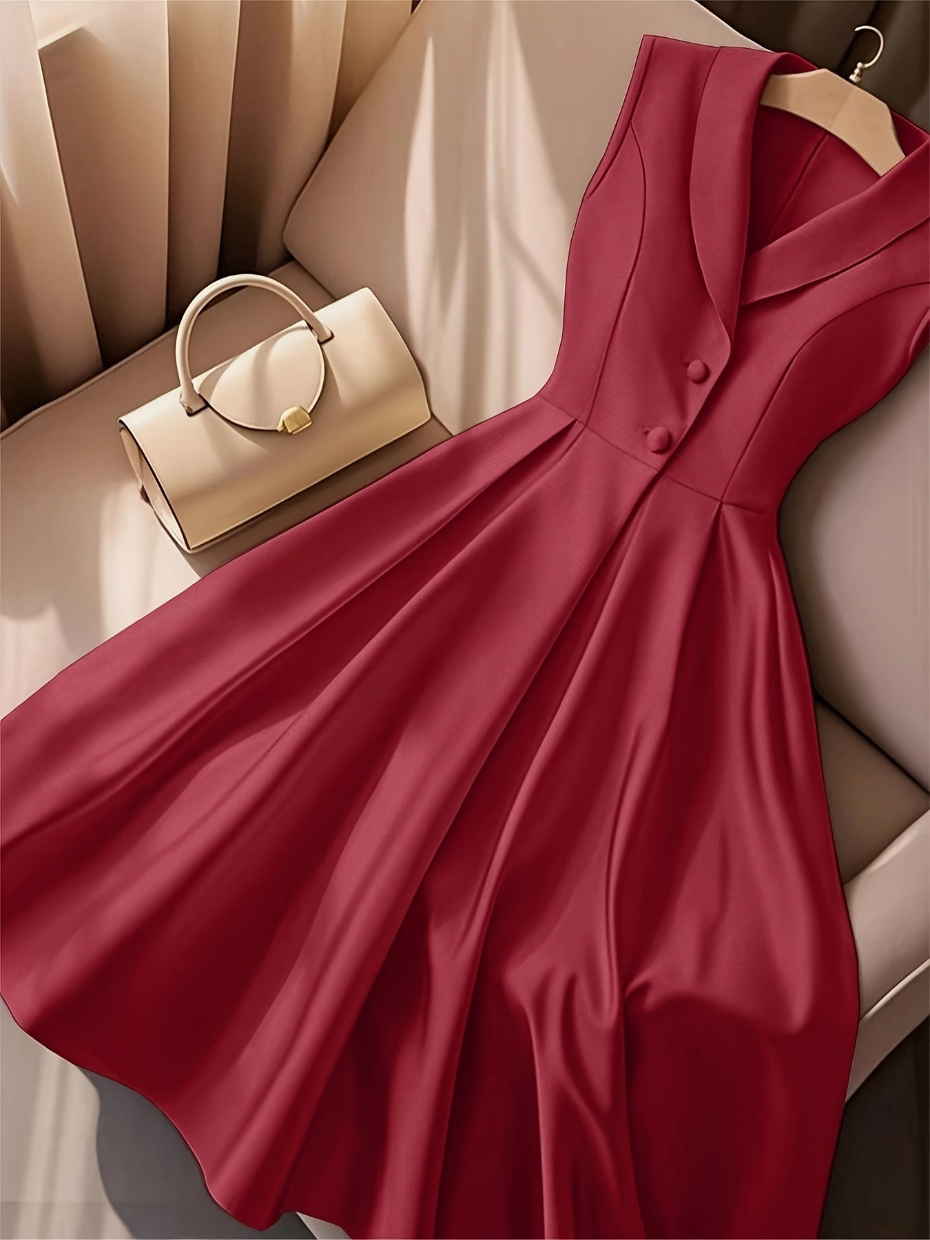 Women's Elegant Slim Fit Sleeveless V-Neckdress - Button-Up Front, Non-Stretchy Formal & Casual Outfit for Office, Party, Vacation - Machine Washable Women's Clothing, Party Attire, Timeless Fashion Piece, Smooth Fabric Finis