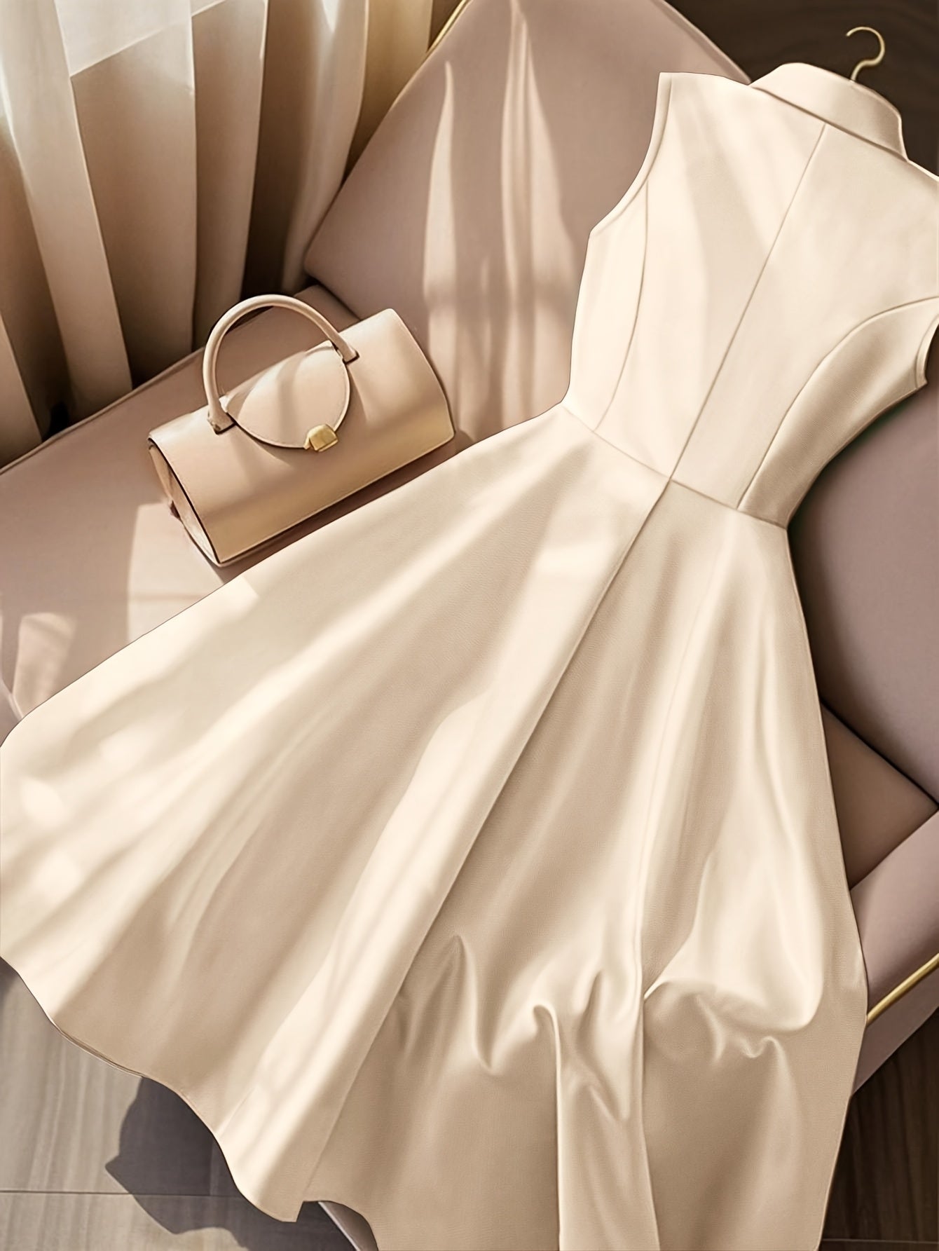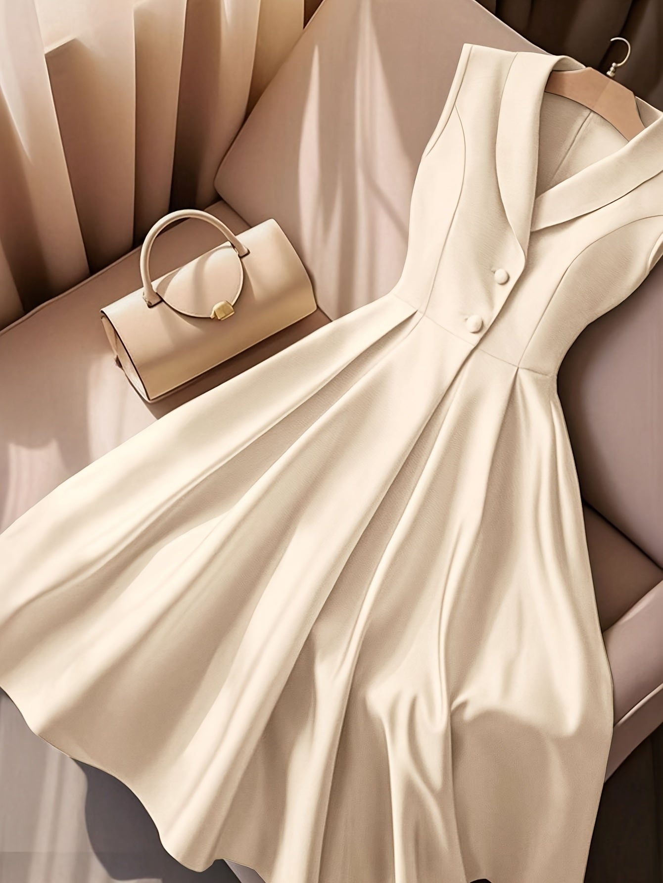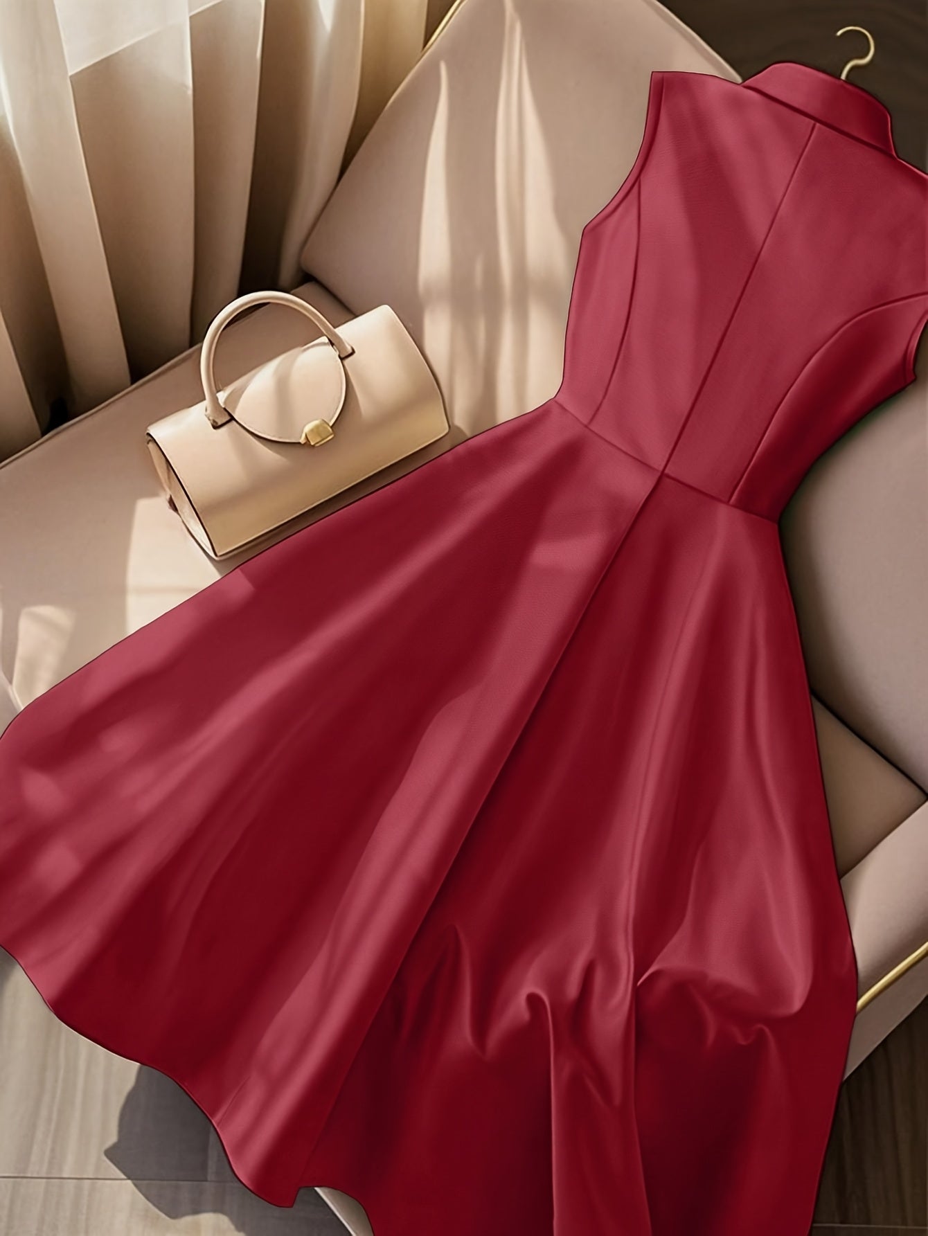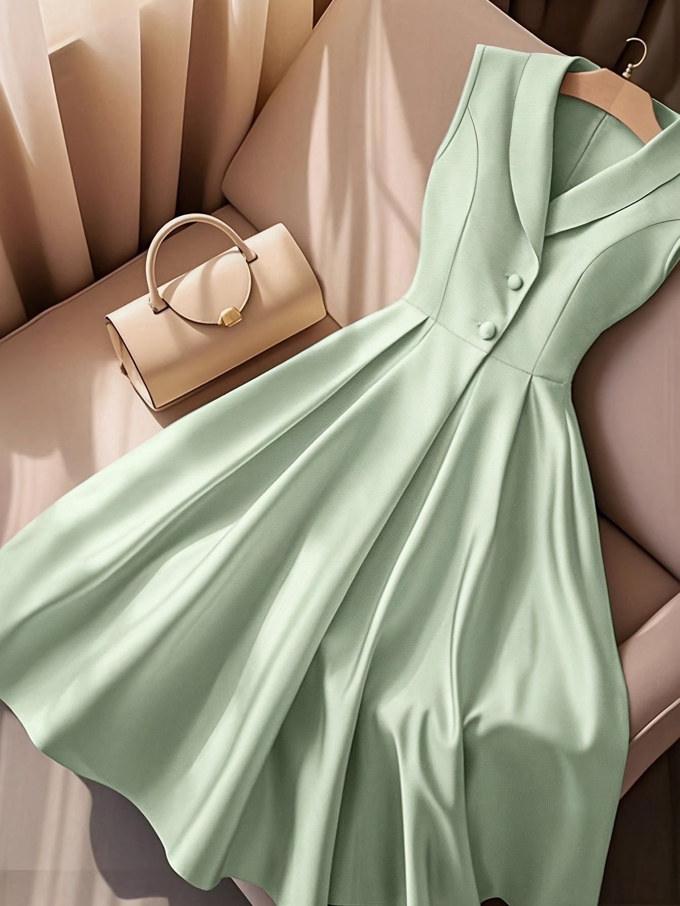 Women's Elegant Slim Fit Sleeveless V-Neckdress - Button-Up Front, Non-Stretchy Formal & Casual Outfit for Office, Party, Vacation - Machine Washable Women's Clothing, Party Attire, Timeless Fashion Piece, Smooth Fabric Finis