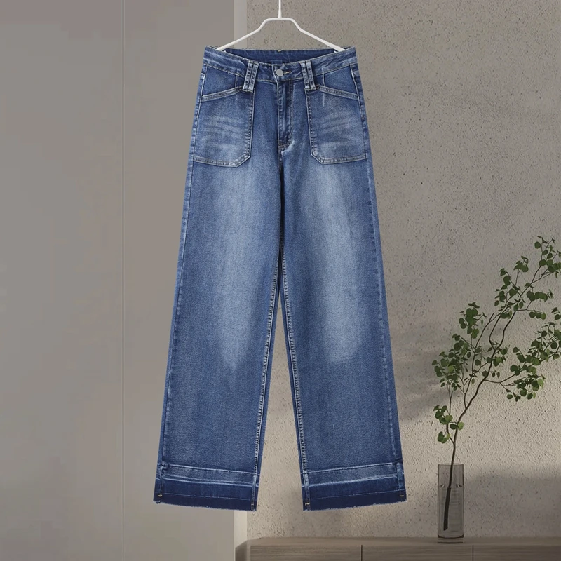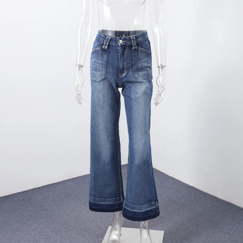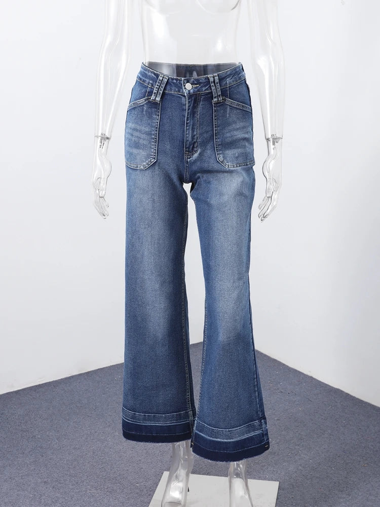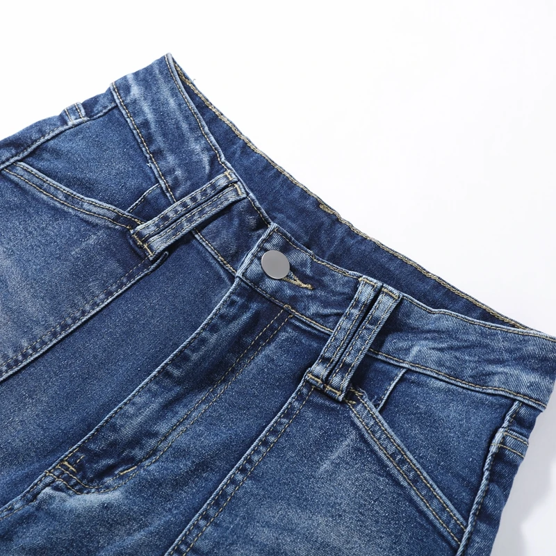 Women's Street Denim Jeans 2025 Autumn Patchwork High Waist Zipper Fly Ripped Retro Long Pants