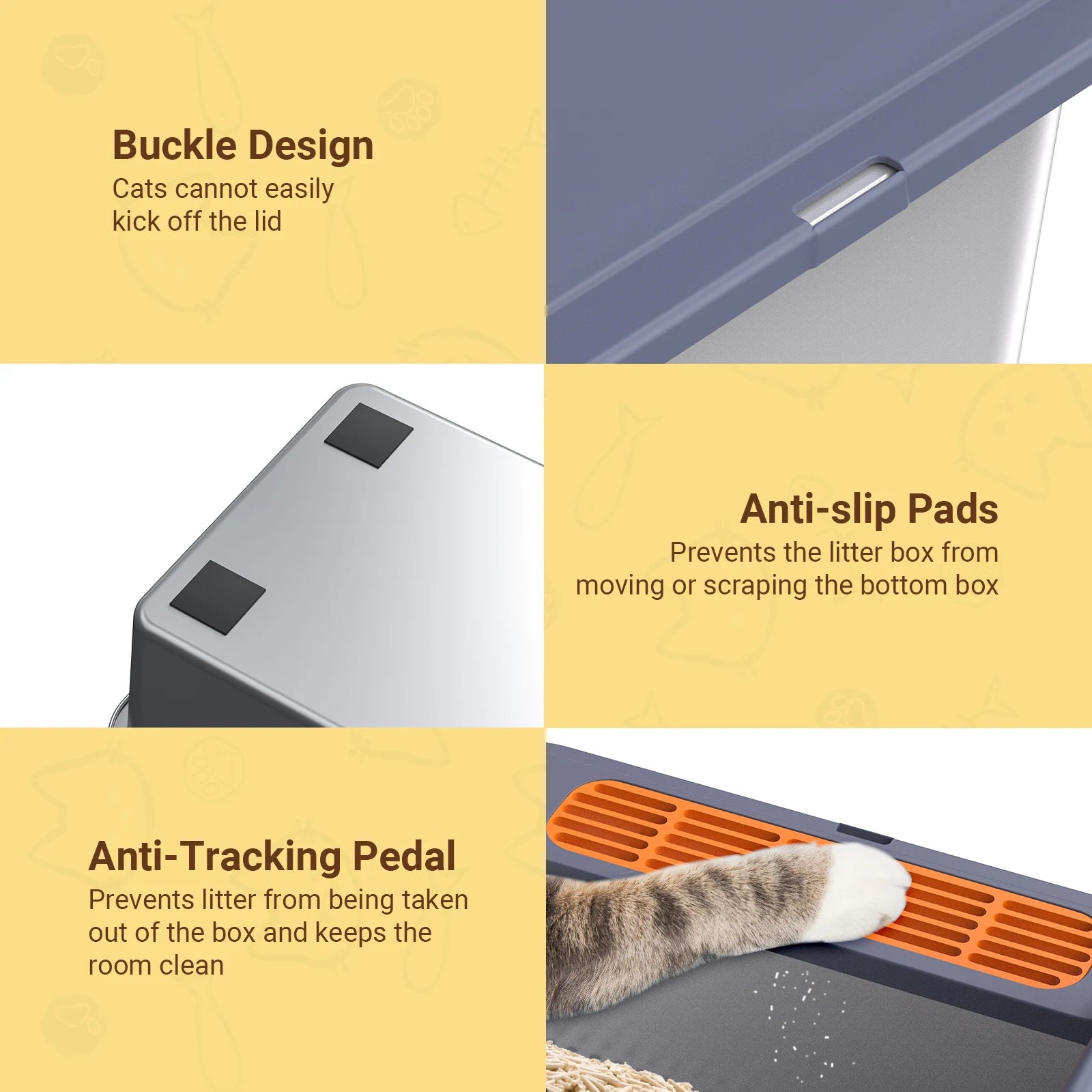 XL Stainless Steel Cat litter box, Sifting Cat Litter Box for Wood Pine Pellets, for big/fat cat, Ordor control, Easy Clean